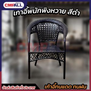 เก้าอี้พนักพิง รุ่นหวาย สีดำ ผลิตจากวัสดุคุณภาพสูง โครงเหล็กแข็งแรง ทนทาน