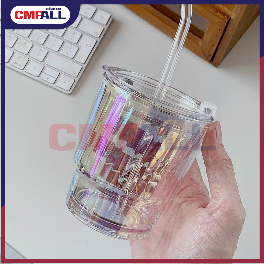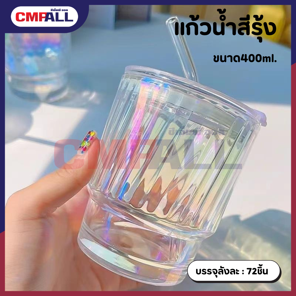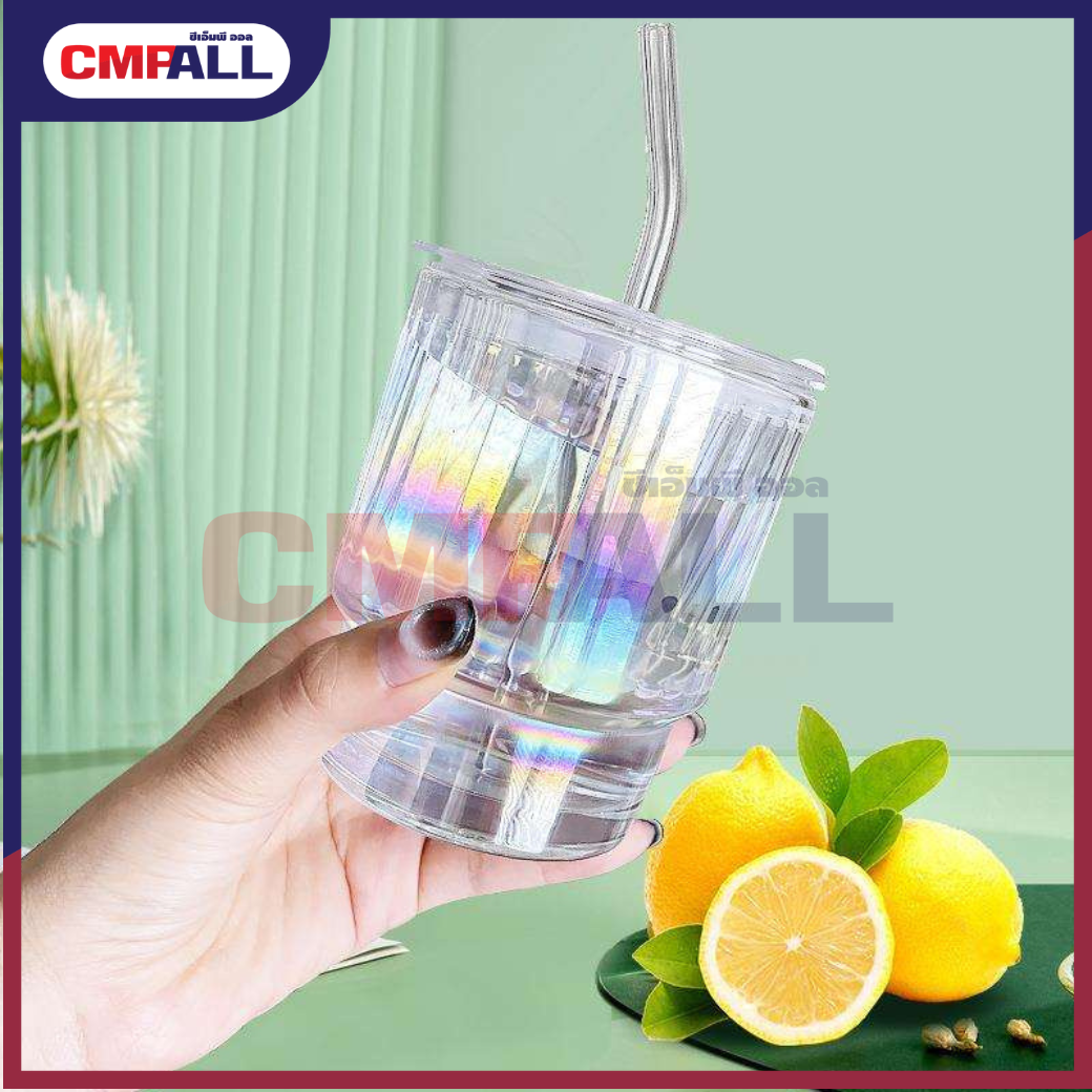 🌈 แก้วน้ำสีรุ้ง มีหลอด 🌈พร้อมกล่อง