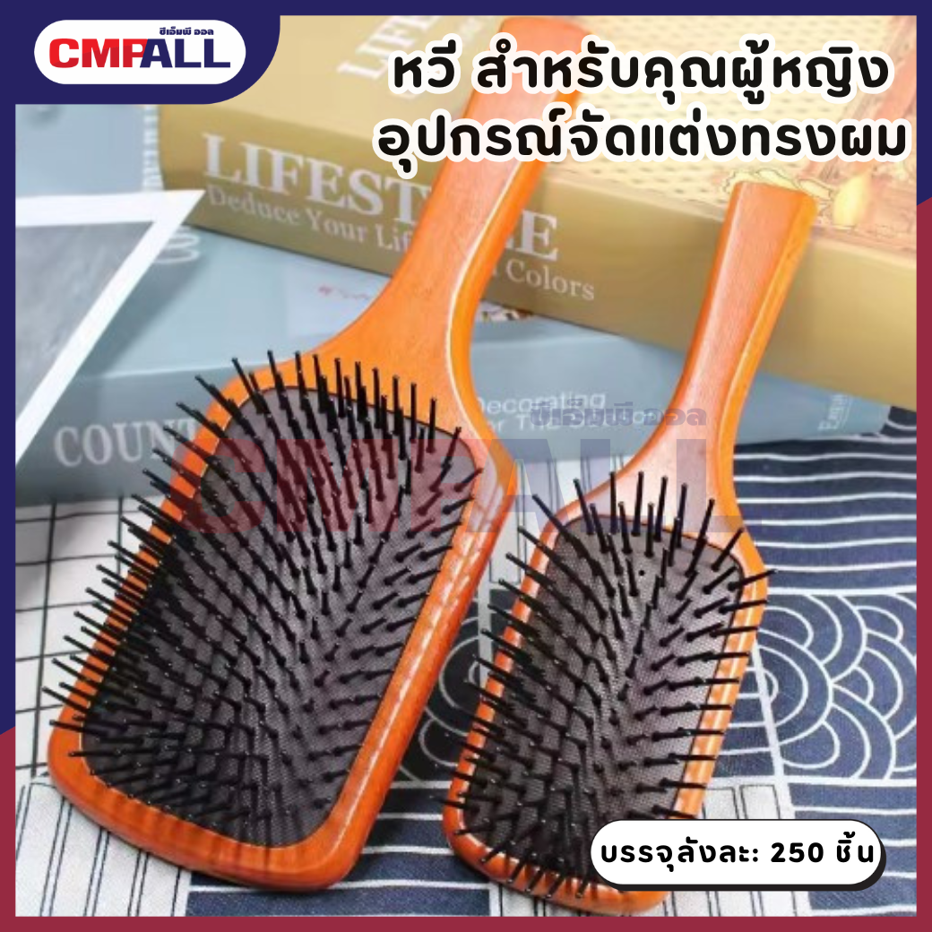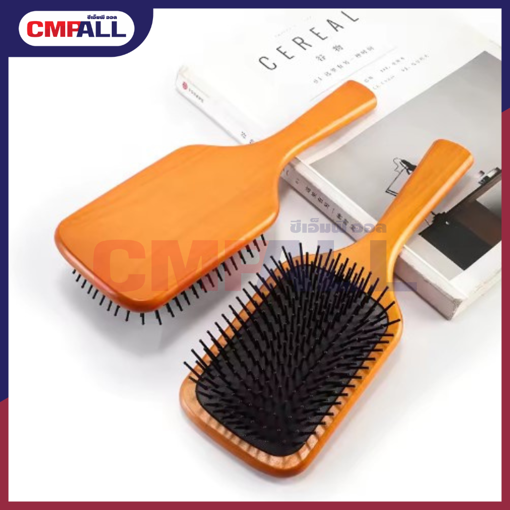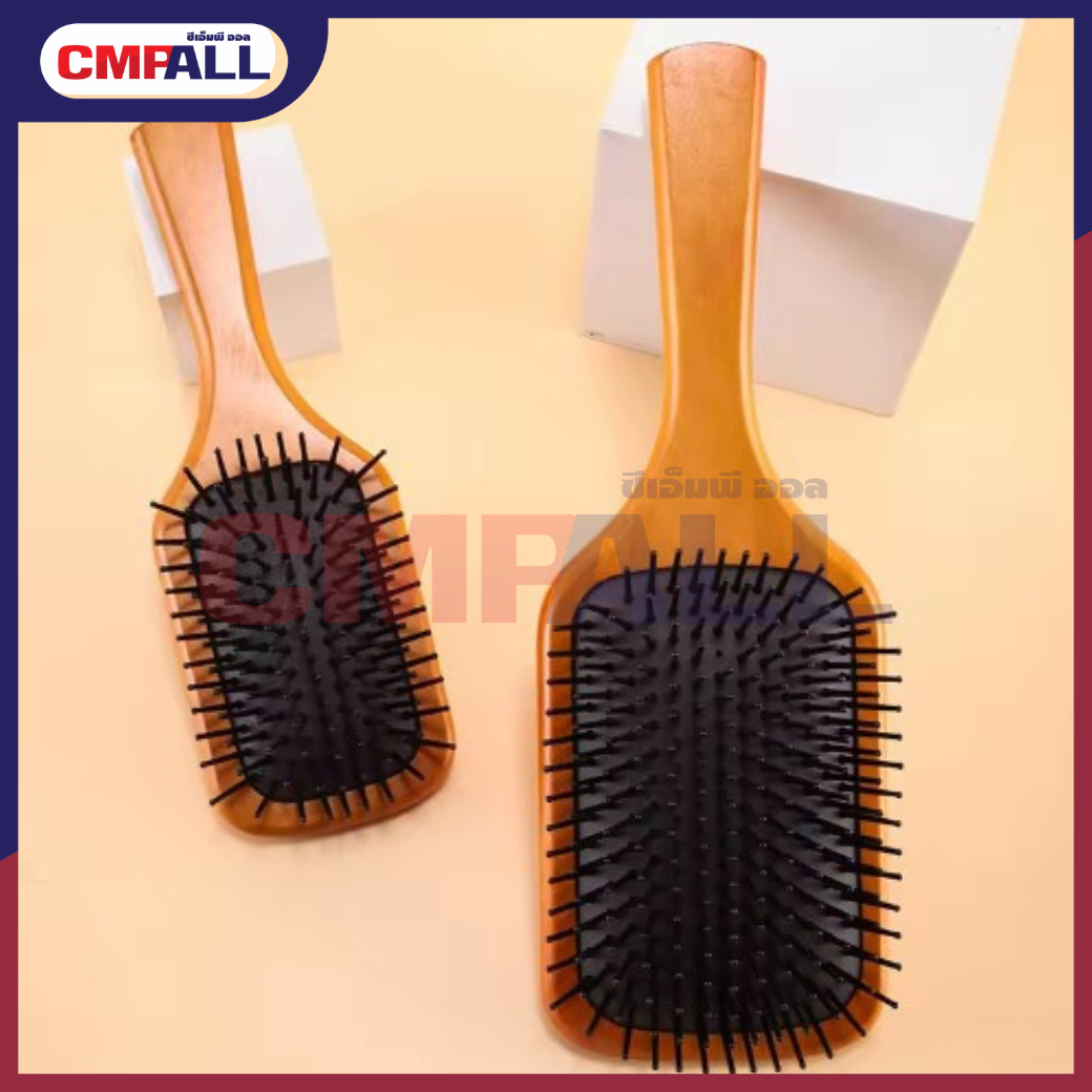 แปรงหวี​ผม หวีไม้ หวีนวดศรีษะ นวดดูแลรากผมเส้นผมหนังศรีษะ หวีด้ามไม้